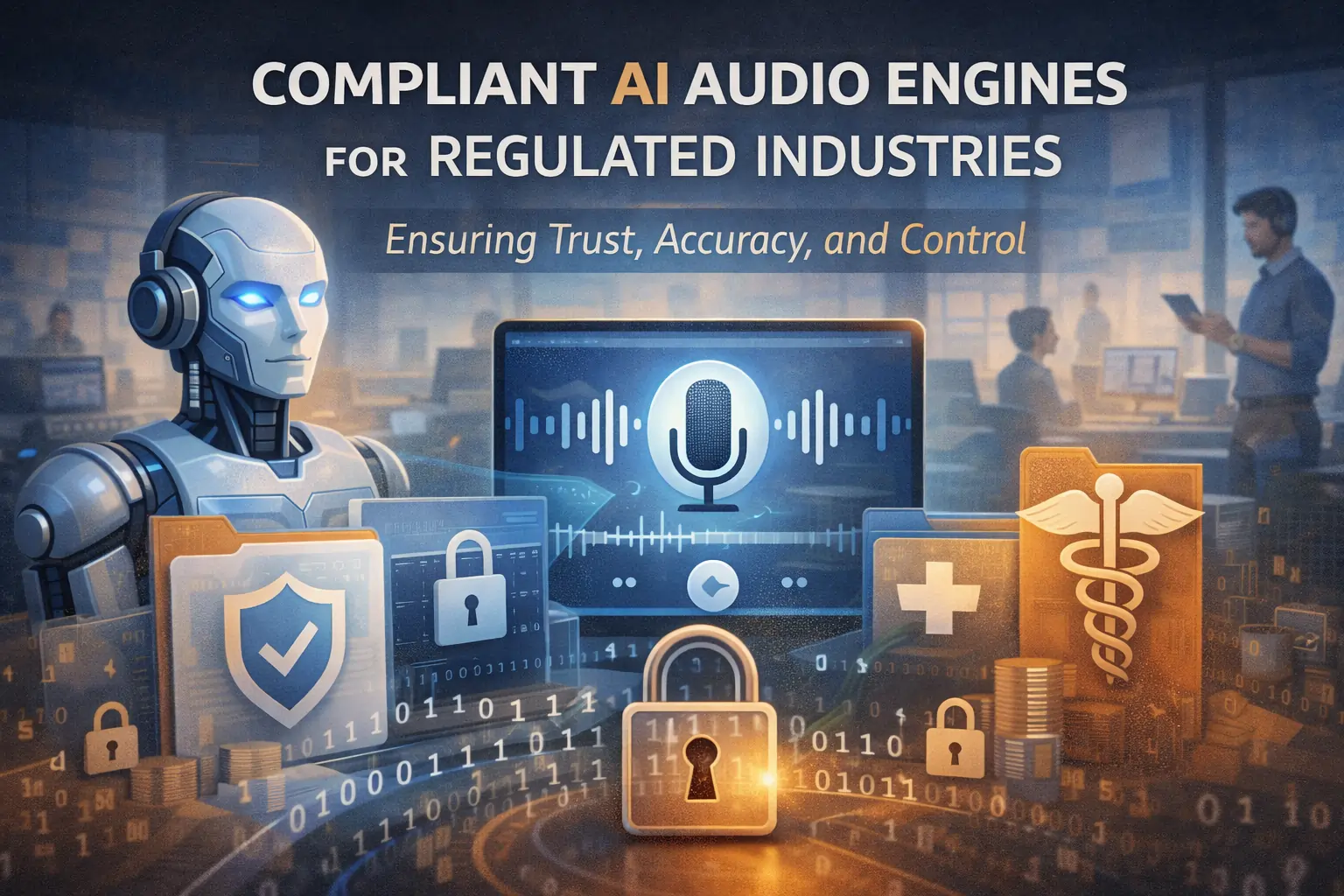 This is where compliant AI audio engines for regulated industries become critical. Unlike generic text-to-speech tools, compliant AI audio systems are designed to meet strict regulatory, security, and governance requirements while still delivering the efficiency benefits of AI.