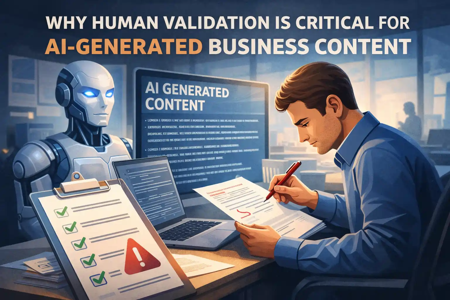 AI has changed how businesses create content, but it has not replaced the need for human responsibility. Human validation is critical for AI-generated business content because businesses operate in real-world environments where accuracy, trust, and accountability matter.